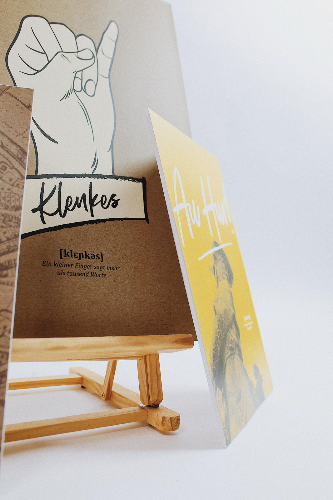 Corporate Design-Entwicklung für das Aachener Label „Öcher Wörter“. Entwicklung des Logos sowie Gestaltung des Produkt-Portfolios und des im "Meyer & Meyer Verlag" erschienenen Taschenbuches "Das große Öcher Wörter Buch".